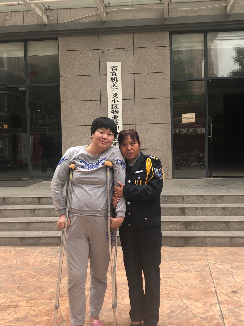 去年11月23日晚上7点多,天寒地冷,路上行人恨不得早早回到家中暖和暖和。李春爱听到三爻小区D、E区间“咚”的一声响,只见一名行人过马路时被一轿车撞飞出十几米远,她赶紧跑过去,俯下身子仔细辨认,但天黑加上伤者满脸是血,陷入昏迷,她也无法辨认。周围围满了人,有出主意的,有问事发原因的,都急的团团转却束手无策。胆大心细的李春爱顾不得多想,脱下自己的棉衣赶忙给伤者盖上,又在伤者口袋里找出手机想帮忙联系其家人,无奈手机锁定解不开,她不顾血污,用自己袖口擦拭伤者脸上血迹,这才认出是自己的同事女保安葛亚蓉,她赶紧拨打120将伤者送往就近医院进行抢救,并在工作之余一次次跑到医院,安慰伤者,照顾生活,如同亲姐妹一般。葛亚蓉醒后对李春爱深怀感激。问到:“李姐,当时我满脸是血的,男人都不敢上前,你咋胆子这么大?”李春爱笑着应道:“我平时也怕见血,但谁让我遇见了,也顾不得那么多了。”